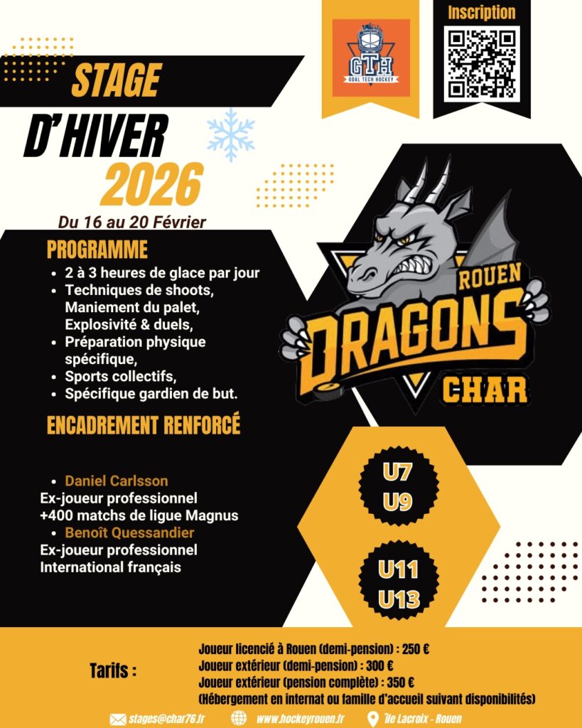 Le Club de Hockey Amateur de Rouen lance son tout premier stage de l’année 2026. Pensé pour accompagner les jeunes hockeyeurs dans leur progression, ce stage d’hiver se déroulera du 16 au 20 février 2026 et s’adresse aux catégories U7, U9, U11 et U13.